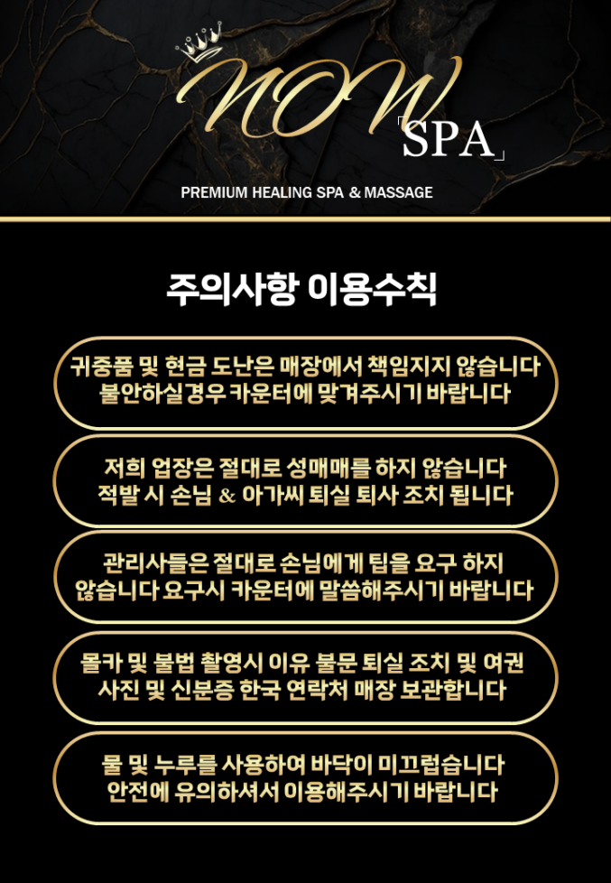 4. 몰카 및 불법 촬영시 이유 불문 퇴실 조치 및 서비스 중단 여권 사진 및 한국 신분증과 연락처 매장 보관합니다